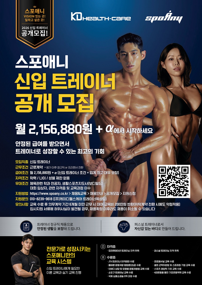 · 채용문의 : 010-8239-9618 (스포애니 트레이너육성팀) / 트레이너 채용 이외 회원권 환불, 센터 이용, 기타 일반 업무 관련 문의는 이용하시는 지점 연락처로 연락 부탁드립니다.