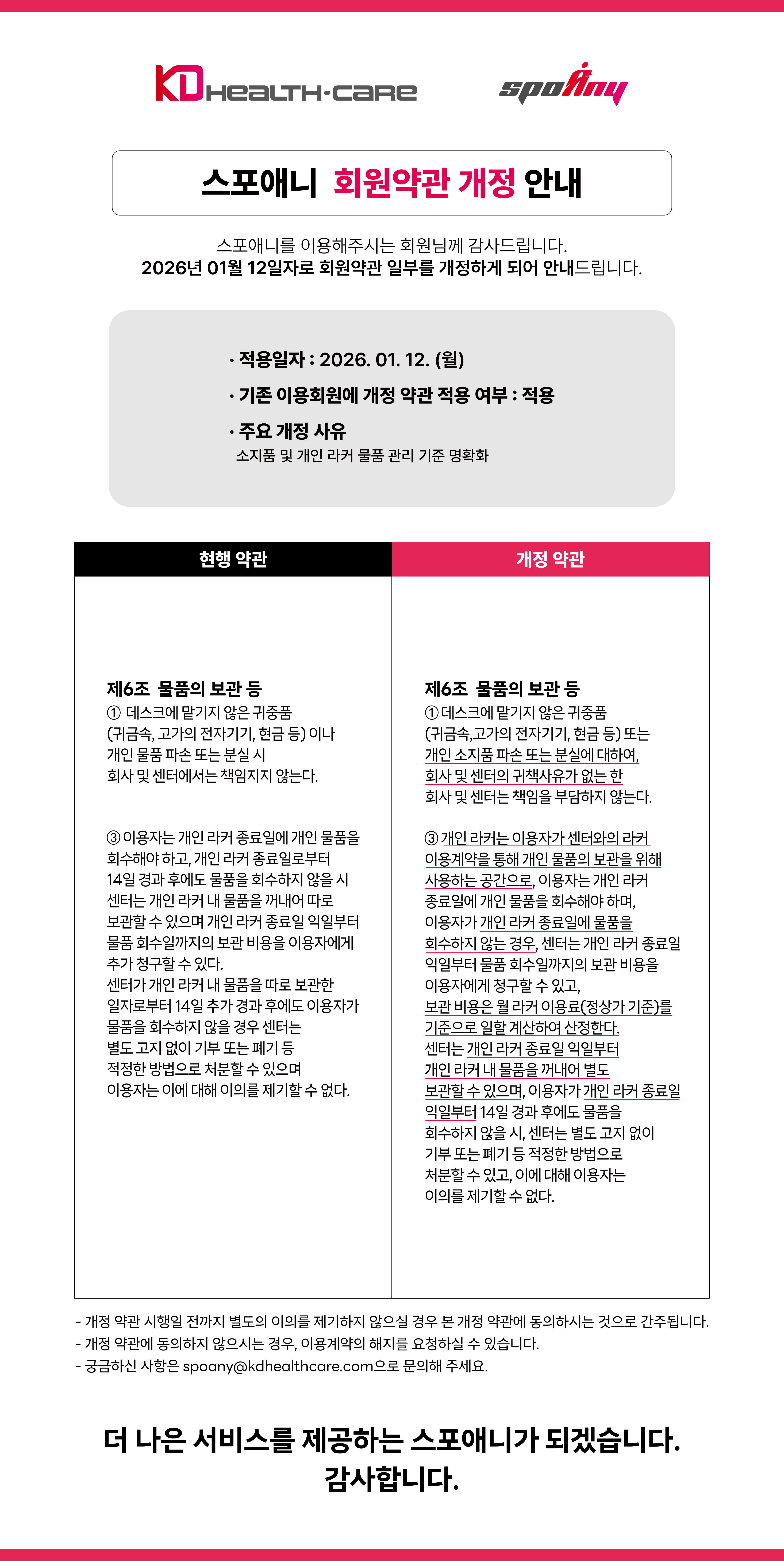 2026³â 01¿ù 12ÀÏÀÚ·Î "¼ÒÁöǰ ¹× °³ÀÎ ¶óÄ¿ ¹°Ç° °ü¸® ±âÁØ" º¯°æ¿¡ µû¶ó ¾Æ·¡¿Í °°ÀÌ ½ºÆ÷¾Ö´Ï ¿Â¶óÀÎ ¼ºñ½º ¾à°üÀÌ °³Á¤µË´Ï´Ù.